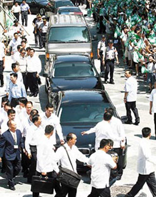 但在2010年9月,臺灣修正“卸任正副領(lǐng)導(dǎo)人禮遇條例”后,只要卸任者涉貪一審被判有罪者,即停止禮遇,三審判刑定讞后則停止隨扈和車輛禮遇。因此在2010年10月,陳水扁每年享有的800萬禮遇金已經(jīng)遭到停發(fā)。