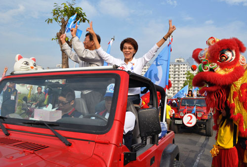 中新網(wǎng)11月12日電 據(jù)臺灣“中廣新聞”報道,臺灣“五都”選舉開跑第一天,國民黨高雄市長候選人黃昭順12日早8點就帶著競選團(tuán)隊上香祈福,隨后展開車隊游行掃街拜票。針對龍?zhí)顿彽匕概袥Q陳水扁有罪定讞,黃昭順說這讓大家對司法重拾信心,并稱高雄都的選舉一定會“棄保”,而且是棄貪腐,保清廉,棄蕭條,保經(jīng)濟(jì)。