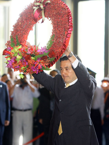 中新網11月24日電 據臺灣《聯合晚報》報道,24日是中國國民黨建黨116周年紀念日,國民黨主席馬英九24日上午前往臺北孫中山紀念館向孫中山銅像致敬。媒體追問對國民黨“五都”選舉的看法,馬英九表示,“孫中山在天之靈,一直都在照顧我們。”