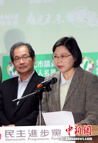 中新網11月27日電 臺灣“五都”市長選舉選舉初步結果27日晚間陸續揭曉。民進黨新北市長參選人蔡英文晚間承認敗選。聽見蔡英文的“落選感言”,臺下民眾高喊“選總統”。