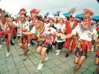 中新網11月5日電 據臺灣《聯合報》報道,一年一度的臺北縣“阿美族”聯合豐年祭,4日在淡水漁人碼頭熱鬧登場。20支來自各鄉鎮市隊伍參加歌舞劇比賽,充分展現力與美,活力四射。