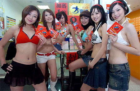 圖:比基尼辣妹不畏寒風為臺灣彩票沖熱買氣