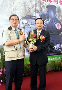 交接儀式中,陳弘毅由顏仁德手中接下象征火車(chē)行駛權(quán)意義的“路牌與通券”,并回贈(zèng)代表嘉義地方民俗技藝“交趾陶”。