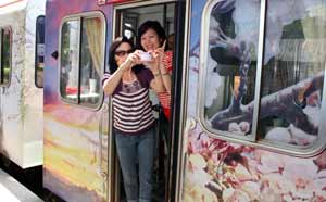 首航的彩繪列車(chē)行駛途中,進(jìn)行沿線(xiàn)風(fēng)景、歷史人文的導(dǎo)覽解說(shuō),除可享受阿里山豐富林相的森林之美外,也能帶給民眾一場(chǎng)別開(kāi)生面的阿里山饗宴,讓游客不虛此行。