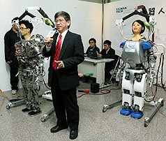 機器人Thomasvs、機器人Janet性別為一男一女,他們不但是情侶還能一搭一唱地說話說相聲,臉部也能有表情,不僅會眨眼睛,臉部還能出現驚訝表情非常生動,相當唯妙唯肖。