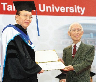 同時獲頒名譽博士的小說作家王文興則有感而發地說,臺灣不能拋棄中國古文化,要放開心胸接受。出生于福建的王文興六十二年前和父母來到臺灣。他畢業于臺大外文系,曾與同班同學白先勇、歐陽子、陳若曦等人創辦現代文學雜志。
