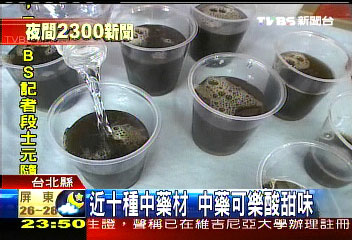 據臺灣TVBS報道,現在小孩喝太多可樂、汽水等含糖飲料的結果,就是小胖子越來越多,要怎樣讓小朋友能喝到氣泡飲料,又兼顧健康,島內中西醫人士一起研發了這種中藥可樂。臺灣中醫肥胖防治協會理事長楊秀蓮表示:“這個東西是能夠取代一直以來讓我們臺灣兒童肥胖的西式可樂!