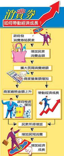 此外,為有效降低成本,有關(guān)消費(fèi)券的形式,“經(jīng)建會(huì)”傾向“發(fā)券不發(fā)卡”,每張面額100元、使用期限為半年,不找零。適用范圍目前有兩種主張,其一是擴(kuò)大到所有商家,不限開(kāi)立統(tǒng)一發(fā)票者,商家事后“憑券請(qǐng)款”。另一主張是,消費(fèi)券只能用于開(kāi)發(fā)票的商家,排除沒(méi)有發(fā)票的傳統(tǒng)市場(chǎng)或一般小店,以證明有實(shí)際消費(fèi)行為。