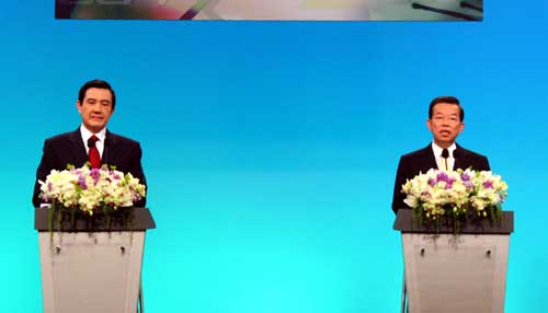 中新網2月29日電 據“中央社”報道,臺灣“中選會”主辦的首場領導人選舉候選人電視政見發表會今晚登場,國民黨候選人馬英九自制政見廣告牌,民進黨候選人謝長廷則準備多則剪報資料,透過兩輪交叉政見發表方式,你來我往,就經濟愿景等議題攻防。