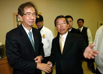 “中央研究院”榮譽院長李遠哲(左)21日表態支持民進黨候選人謝長廷,希望謝長廷能記取八年來陳水扁做得不盡完善的地方,落實人民期許和批評。