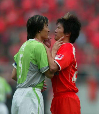 在這篇名為“中國足球隊長李瑋峰——從以前起就是鎖喉王子”的專題文章中,球迷逐一貼出了李瑋峰在各場中超聯(lián)賽中施展“鎖喉功”的圖片,以及在2008年東亞足球賽上“大頭”對日本隊前衛(wèi)鈴木啟太動手的一幕。文末還附上了李瑋峰為國內某體育雜志拍攝的系列“鎖鏈照”。圖中的李瑋峰裸露上身、肌肉虬張,配上日媒“最強暴力后衛(wèi)登陸J聯(lián)賽”的新聞稿,更增爆笑效果。