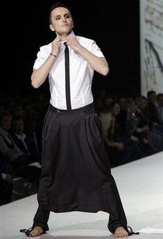 10月24日在莫斯科舉行的時裝周讓人大開眼界,模特們拋開舞臺上的矜持,用夸張的步伐、神態(tài)和自由的發(fā)揮展現(xiàn)另類服裝的另類魅力。