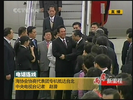 臺灣海基會副董事長兼秘書長高孔廉與大陸海協會常務副會長鄭立中等人到機場接機。