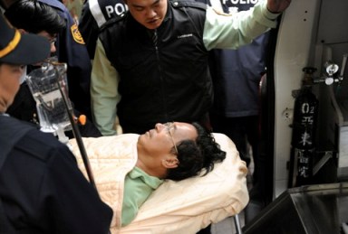 組圖:陳水扁躺在擔架上打點滴(2)
