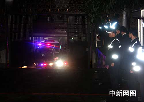 圖為3時30分,載著陳水扁的臺北地方法院的警備車準備開出臺北地院鐵門,前往臺北看守所。 (中新社記者 陳立宇/攝)