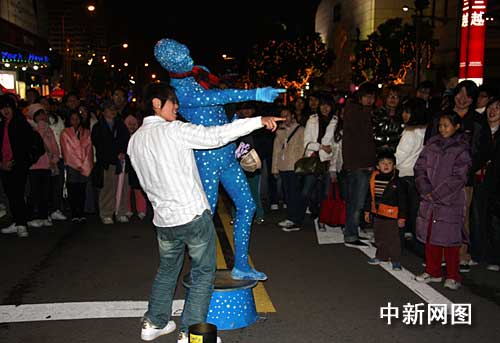跨年夜的臺北市街頭舞蹈家。中新社記者 陳立宇/攝