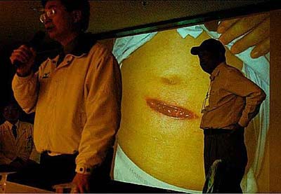“總統府”發言人黃志芳(左)及奇美醫院院長詹啟賢(右)在記者會中向民眾說明病情。