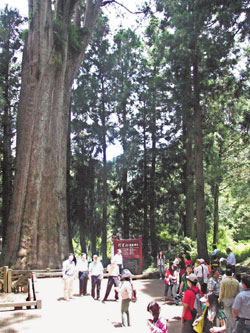 大陸客走訪阿里山神木群,見識神木的雄偉,紛拍照留念。