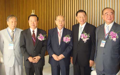 海基會董事長江丙坤(右二)與海協會副會長王在希(左二)七日出席第十三屆中國現代化學術研討會。中為“促進中國現代化學術基金會”董事長梅可望。 (“中央社”圖)