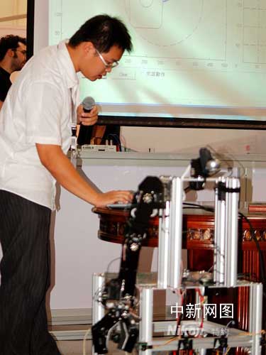 臺灣淡江大學(xué)的學(xué)生演示機器人。作 者:李克祥