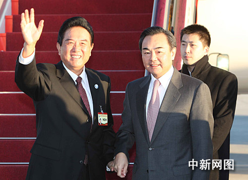 11月3日,海協會會長陳云林一行7時30分許乘機離京赴臺,國臺辦主任王毅前往機場送行。中新社記者 趙振清 攝