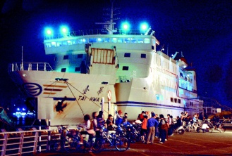 臺華輪船齡十八年,排水八千噸,可搭載一千一百余人,最大航速二十二節,高雄到馬公航程四個多小時,從馬公到廈門要六點五小時至七小時。
