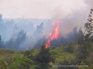 據臺灣東森新聞報道,大大小小總計11顆地雷發生大爆炸,震撼金門古寧頭,濃煙遮蔽了天空,產生的大火更在東北季風助長下一發不可收拾,加上附近就是雷區,消防人員全副武裝,卻無法接近,只能請求空勤支持。