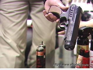 防身器材業(yè)者陳慈美表示:“這個(gè)叫做辣椒噴霧槍?zhuān)鼈儑姵鰜?lái)的距離是5公尺到7公尺,噴出去的話是直線形,然后再擴(kuò)散,有點(diǎn)淺咖啡跟辣椒那種紅色的顏色出來(lái)。”