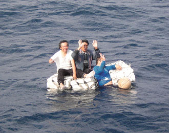 大陸漁工林亞貢一度哭著說,不可能有人來救我們,干脆放棄。是他把林亞貢拉上碰墊說:“要有信心,我們一定要撐到有人來救。” 就在脖子被曬傷發(fā)痛時,見巡防艇趕來,他高興得哭出來