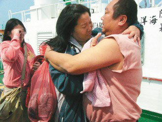 徐東誠是臺東區(qū)漁會常務(wù)監(jiān)事,妻女昨天趕到馬公港等他回來,三人在岸上相擁而泣。太太趙淑敏表示,回家一定要老公吃豬腳面線壓驚。林亞貢獲救后則說:“臺灣人說我是大陸人,但在海上,我們是一家人。”
