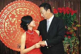 中新網7月23日電 據臺灣《聯合晚報》報道,臺灣鴻海董事長郭臺銘與曾馨瑩今日中午文定,7月26日將舉行結婚典禮,將曾馨瑩娶回來。今日文定由國民黨秘書長吳敦義擔任介紹人。