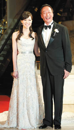 中新網7月28日電 臺灣科技首富郭臺銘與舞者曾馨瑩婚宴前晚一直舉行到午夜,鬧洞房順理成章取消,前天起曾馨瑩成了郭太太,據了解,已有一幫貴婦團等著“訓練”她,而她和郭臺銘女兒郭曉玲的孕事也成了眾所矚目焦點,誰先當媽?兩位郭臺銘深愛的女人,肚皮動靜引人猜測。