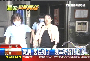 據(jù)臺(tái)灣TVBS報(bào)道,走出電梯間,面對記者,陳幸妤似乎早就準(zhǔn)備好臺(tái)詞。她說:“我‘建議’你們用十分之一(人數(shù))的記者就好,去把馬唯中‘圍’回來,這樣子馬英九他就學(xué)會(huì)怎么叫‘愛民如子’。”
