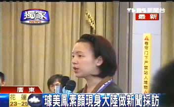 璩美鳳采訪新聞,本身也是新聞人物,接受采訪時,手上還是拿著麥克風,在大陸有一定知名度的璩美鳳,外出采訪時,常會遇到記者同行或男士們要求合照留念。
