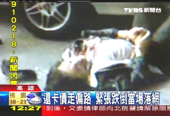 中新網11月10日電 據臺灣TVBS報道,高雄一名男子,疑似為了償還卡債持刀搶劫,沒想到被害人奮力抵抗,該男子落荒而逃,卻撞上停在路邊的車輛,當場骨折倒地不起,警方說這就是“賊星該敗”。