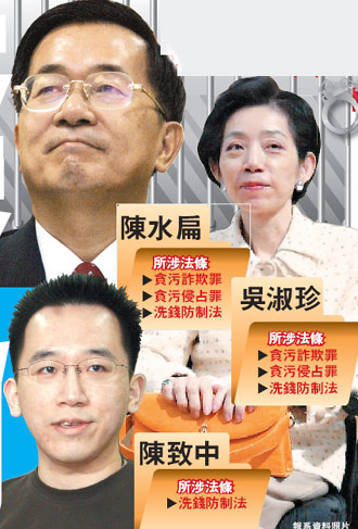 至于扁家有多少不法所得,起訴書指出,陳水扁與吳淑珍共同詐領及侵占之“國務機要費”共計新臺幣1億415萬2395元;又利用職權藉科學園區管理局于2003、2004年間以“先租后購”方式,由“政府”向達裕公司價購座落龍潭科技園區范圍內之土地并變更為科學工業園區部分,與其配偶吳淑珍及居中牽線之蔡銘哲、當時擔任科學園區管理局長之李界木等人,共同收賄美金1198萬元(約新臺幣4億元),其中陳水扁、吳淑珍共分得賄款1億元及美金600萬元;吳淑珍于2003、2004年間,透過蔡銘哲居間牽線,協助力拓公司董事長郭銓慶,取得“南港展覽館新建工程”標案,并于2004年12月1日收受郭銓慶交付之賄款美金273萬5500元(折算新臺幣9180萬9398元);另外,陳水扁利用職權,與吳淑珍共同向辜仲諒索款而貪污之款項合計2億9000萬元。
