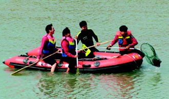 岸上圍觀民眾擔心它會淹死而目睹了一場不一樣的抓猴記。警義消拿出網子朝小獼猴撒網,終將它“撈”上橡皮艇,“抓猴劇”半小時落幕。