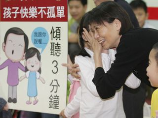 中新網4月4日電 據“中央社”報道,今天是臺灣兒童節,馬英九夫人周美青參加兒盟活動與學童對談,周美青說,父母是小朋友最好的老師及朋友,要把陪伴小孩時間列入每天行程,用餐、接送上下學都是陪小孩的最佳時間。