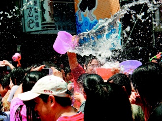 中新網(wǎng)4月13日電 臺(tái)灣臺(tái)北縣“中和市2009潑水節(jié)”昨天上午在南勢(shì)角捷運(yùn)站盛大登場(chǎng),民眾拿著水槍、水瓢、水桶到處噴灑開(kāi)戰(zhàn),臺(tái)北縣消防局也調(diào)派兩輛消防水車(chē)加入戰(zhàn)局,超強(qiáng)水柱掃射現(xiàn)場(chǎng)民眾,讓民眾遇水則發(fā),氣氛夯到最高點(diǎn),樂(lè)到不行。