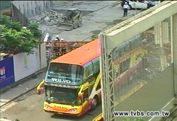 臺北市消防局表示,下午1時54分松高路19號工地發生起重機吊臂掉落,砸中1輛停在路旁、載著25名大陸游客的游覽車尾端,目前傷者已經送醫急救。