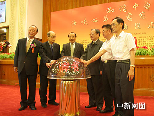 中新網北京6月9日電 (吉翔)為慶祝中華人民共和國成立60周年,進一步推動海峽兩岸文化交流與合作,“和諧中華·海峽兩岸書畫藝術家交流活動”9日中午在北京人民大會堂啟動。