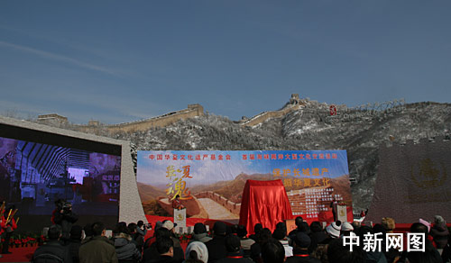 中新網北京11月10日電 (魏恒)經過一夜大雪,八達嶺銀裝素裹。10日上午,兩岸百名抗戰高級將領后人會聚長城腳下,將采自著名抗日戰場的土壤放入大鼎,永久保存于長城博物館。