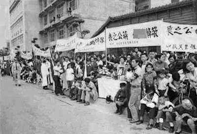 當(dāng)日,治喪委員會的大員們還想出了“路祭”這個名堂,沿路分配各機構(gòu)行號另設(shè)供桌,同時規(guī)定靈車經(jīng)過時不許迎靈的人們抬頭正視。此外還要求民眾在大典鳴炮之時,在原地悼念3分鐘。
