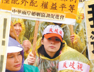 中新網(wǎng)3月23日電 臺灣《聯(lián)合報》今日發(fā)表文章說,兩岸婚姻已一、二十年,許多大陸配偶已成臺灣新住民,他們的下一代變成新臺灣之子,但“兩岸人民關(guān)系條例”遲未修正,部分歧視性的條文,讓二十九萬大陸配偶飽嘗挫折,當初她們懷著新婚的喜悅與家人的祝福踏上寶島,但才發(fā)現(xiàn)臺灣是個不友善的地方。