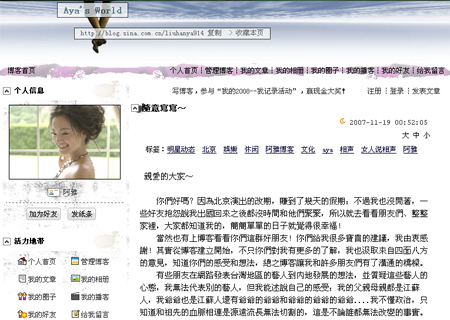 某門戶網站將阿雅這篇寫于十一月十九日凌晨的博客文章鏈接在顯要位置,吸引許多網友涌入,短短不到兩天時間,已有逾四百條留言。