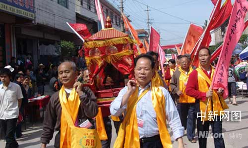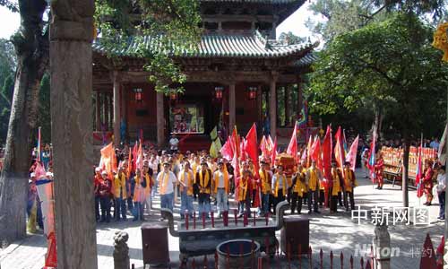 中新網(wǎng)5月14日電 (王鐵成 李旭鵬)農(nóng)歷四月初八,是山西運(yùn)城市解州鎮(zhèn)古廟會(huì),也是位于解州的關(guān)帝祖廟舉辦“關(guān)帝巡城”活動(dòng)之日。當(dāng)天上午,關(guān)帝圣像在鑼鼓、令旗開(kāi)道下,在來(lái)自福建等地及當(dāng)?shù)匦磐降拇負(fù)硐拢耸Т筠I巡游解州古城,所到之外,香煙裊裊,鞭炮起鳴,民眾紛紛頂禮膜拜。正在山西平遙拍攝《大陸尋奇—山西篇》的臺(tái)灣中國(guó)電視公司與中國(guó)華藝音像實(shí)業(yè)有限公司一行六人也聞?dòng)嵡皝?lái),趕制專(zhuān)題節(jié)目。