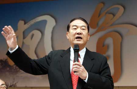 宋楚瑜二月二十五日出席前高雄縣長林淵源“風(fēng)骨─林淵源八十談往”新書發(fā)表會(huì),批評(píng)藍(lán)綠兩位“大選”候選人辯論會(huì)都未真正面對(duì)問題。(“中央社”圖;孫仲達(dá)攝)