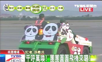 圖:贈臺大熊貓“團(tuán)團(tuán)”、“圓圓”抵達(dá)臺北