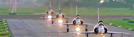中新網4月27日電 據臺灣媒體報道,臺軍漢光二十六號演習26日展開,為驗證幻影戰機保存成效,演習首度安排45架戰機逃離新竹空軍基地,飛往花蓮佳山基地,以逃避導彈攻擊。