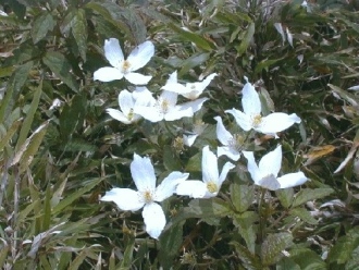 合歡山區最搶眼的花卉,非玉山山蓼莫屬,又稱“高山威靈仙”、“繡球藤”,四片白色花瓣要不注意到它都很難。玉山山蓼為多年生蔓性木質藤本植物,喜愛陽光,5-6月間白色花簇生于葉腋,花朵大而顯眼,常見于路旁灌叢。
